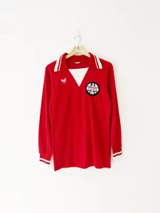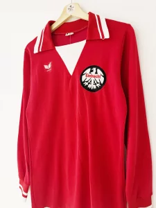 Eintracht Frankfurt enjoyed a strong campaign in 1978–79, finishing mid-table in the Bundesliga while reaching the semi-finals of the UEFA Cup. This long sleeve home shirt—with its minimalist design—was worn in both domestic and European matches, particularly in colder months.