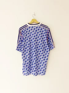 This shirt was worn during a formative era for Sir Alex Ferguson’s Manchester United side. It featured prominently in the 1991–92 League Cup victory and is remembered for its bold, brash styling at the dawn of the Premier League. One of the most popular and replicated retro shirts ever made.