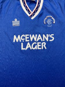 This home shirt was worn during a hugely successful period at Ibrox. Rangers won the Scottish Premier Division in both 1990–91 and 1991–92, as well as several domestic cups. It remains one of the most popular Admiral designs among collectors and fans alike.