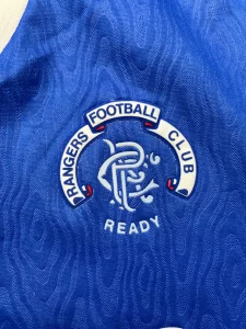 - Crest: Fully embroidered Rangers scroll crest featuring “Rangers Football Club – Ready” wording.