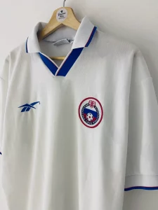 This shirt was worn during Euro 96, where Russia were drawn into a tough group with Germany, Italy, and the Czech Republic. Despite not progressing, they memorably drew 3–3 with the Czech Republic in their final match. The shirt was used again in the early stages of the 1998 World Cup qualifiers.