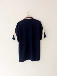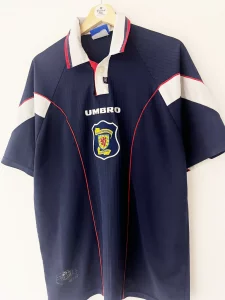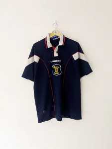 Worn across two major tournaments, the 1996–98 Scotland home shirt became iconic during the country’s spirited appearances at Euro 96 and the 1998 World Cup. The shirt debuted during a narrow defeat to England at Wembley and was later immortalised in the opening game of France 98 against Brazil.