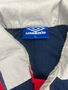 Inner Label: Classic blue Umbro size label stitched to the collar, no hologram present on earlier retail issues.
