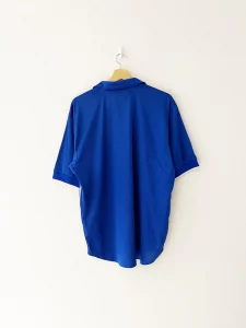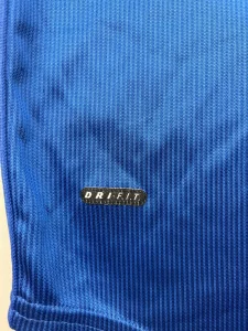 The Italy 1998 Home Shirt, made by Nike, was the first Italy shirt not manufactured by an Italian brand. Worn during the 1998 FIFA World Cup in France, it featured a clean and modern aesthetic with classic royal blue colouring, subtle vertical ribbing, and the FIGC’s iconic circular crest with three stars. Known issues include counterfeit versions lacking the ribbed texture, incorrect collar shape, and missing “Dri-FIT” tag near the hem.