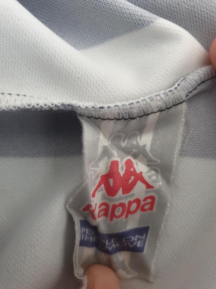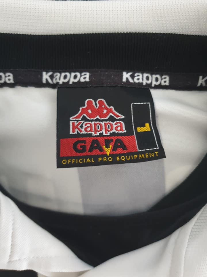 The Juventus 1998–99 Home Shirt, made by Kappa, is one of the most iconic shirts of the late ’90s and features the bold “D+ Libertà Digitale” sponsor. Known for its classic black and white stripes, this shirt is heavily faked. Spotting a fake Juventus 1998–99 home shirt often comes down to the wrong collar shape, misaligned stripe widths, or incorrect Kappa embroidery details.