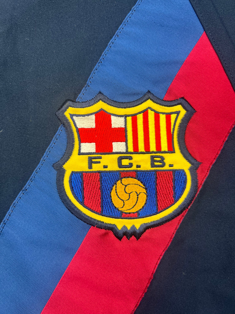 Crest: Barcelona crest is sewn over the sash on the left chest. The crest has a distinctive bright yellow edge and clean inner detailing.