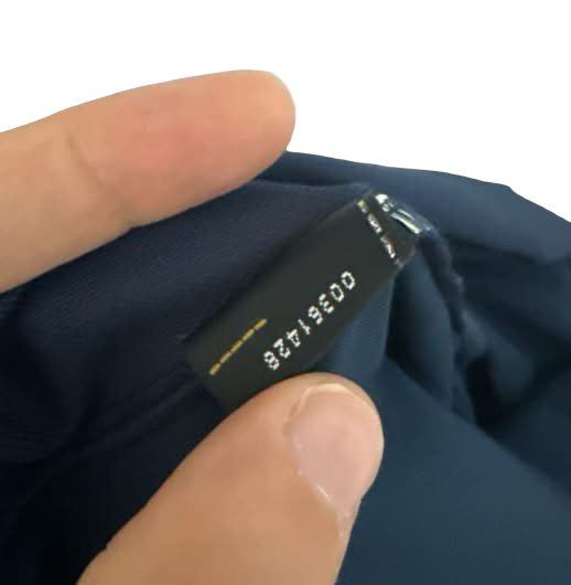 Beware of fakes with printed sashes instead of sewn panels. Authentic shirts have sharp stitched colour transitions and a high-quality crest.