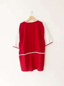 The 2002–04 home shirt will forever be associated with The Invincibles. Arsenal’s 2003–04 campaign is the stuff of legend — 38 Premier League matches unbeaten. This shirt was front and center in defining moments: Thierry Henry’s dazzling goals, Vieira’s commanding midfield presence, and that final-day draw at Highbury to seal an undefeated league season.