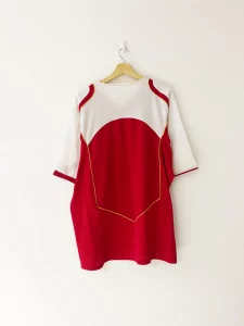 The Arsenal 2004–05 Home Shirt was worn by the Gunners during their final full season at Highbury and is remembered for its deep red tone, wide side panels, and gold detailing. The shirt is a favourite among collectors as it bridges the transition from the Invincibles era into a new phase under Arsène Wenger. Common authenticity issues include poorly stitched crests, missing inner Nike tags, and replicas lacking the structured piping detail around the sides and back.