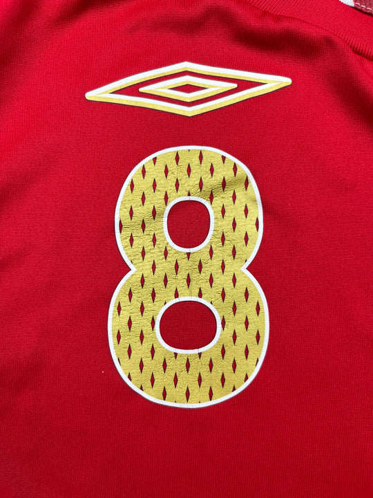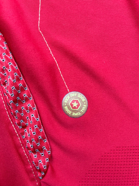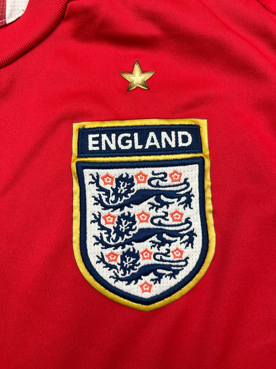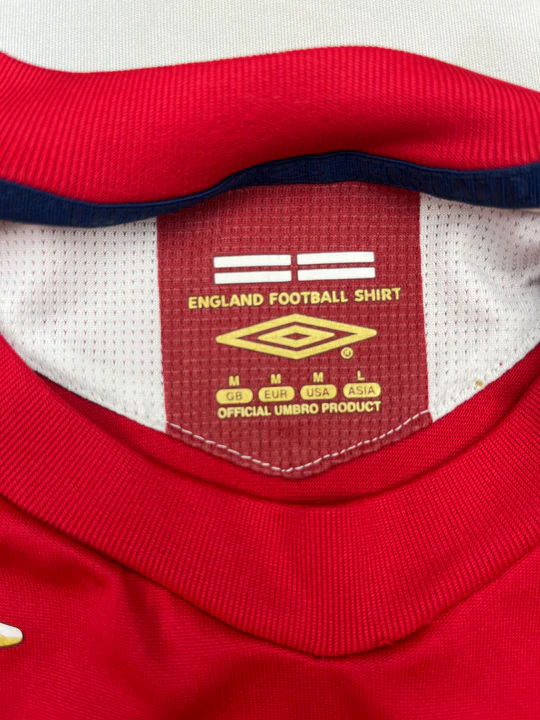 England used this shirt at the 2006 World Cup in Germany, where they reached the quarter-finals before losing to Portugal on penalties. The red shirt was worn in the final group game against Sweden and remains associated with a generation of high-profile players like Beckham, Rooney, Lampard, and Gerrard.