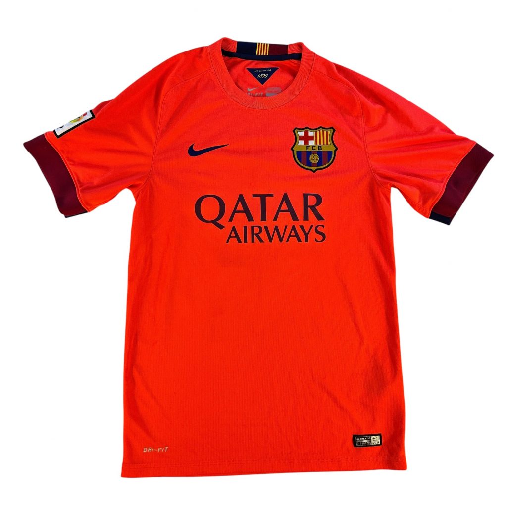 Inner Label: Printed neck tag featuring NikeFITDRY branding and “Més que un club” in yellow across the inside collar.