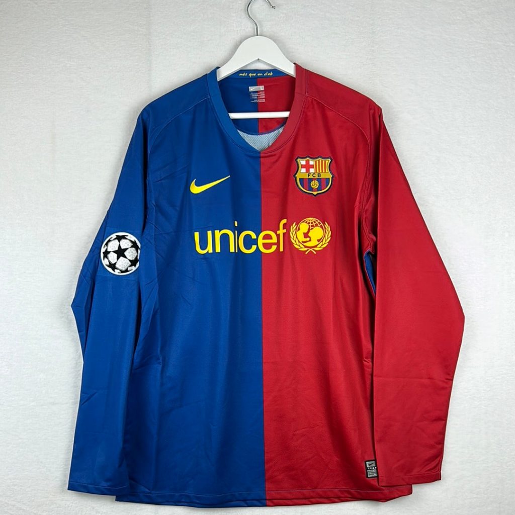 Barcelona finished 3rd in La Liga under Frank Rijkaard, with a squad full of talent but inconsistency. The shirt marked the 50th anniversary of the Camp Nou and was memorable for being worn during Lionel Messi’s early rise to global superstardom.