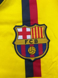 Crest: Fully embroidered FC Barcelona crest with vertical stripe underneath
