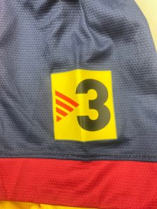 - Unique fade-in gradient from red centre stripe into dark navy sleeves and sides
