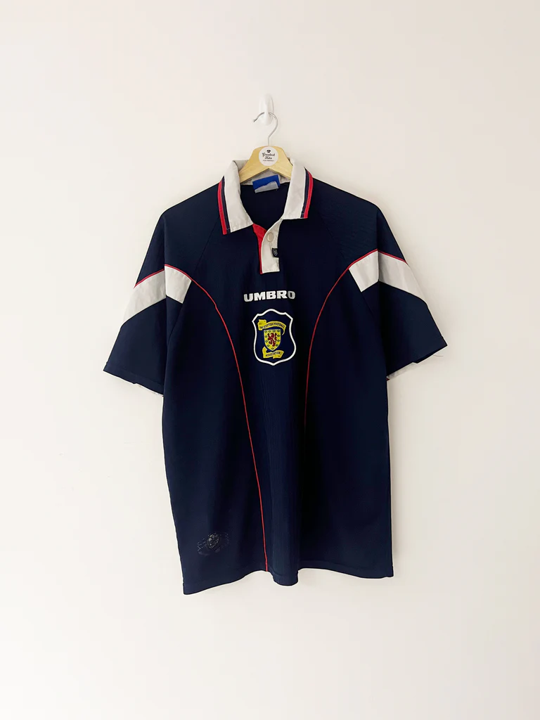 The Scotland 2012–14 home shirt marked the beginning of a new era under adidas, who introduced a modern design with traditional cues. Worn throughout the 2014 World Cup qualifiers, this shirt features a deep navy base, tartan sleeve panels, and a minimalist aesthetic. Authentic versions are often misidentified due to the subtle fabric pattern and varying collar constructions across youth and replica releases.