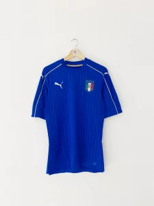 At Shirtchecker.com, we help collectors visually authenticate football shirts using match-accurate references. The Italy 2016–17 home shirt is easily identified by its pinstripe base, gold-trimmed accents, and precise Puma detailing. Always check the inner neck print, material texture, and logo positioning when confirming authenticity.