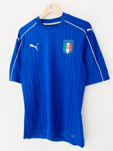 Italy wore this shirt throughout Euro 2016, advancing to the quarter-finals after a memorable 2–0 victory over Spain. The shirt continued into 2018 World Cup qualifying, where Italy finished second in their group behind Spain. This shirt is remembered as the final Italy kit under coach Antonio Conte and one of the last for several senior players.