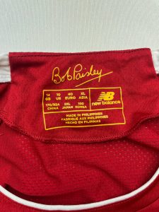 - Back Neck Detail: Bob Paisley’s signature printed inside the collar