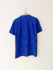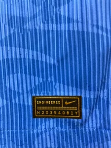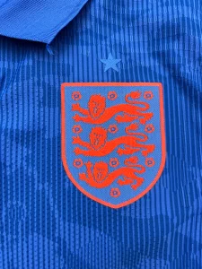 The England 2020–21 Away Shirt introduced a bold royal blue colour scheme with red detailing, a stark departure from the traditional red. Designed by Nike, it features a patterned jacquard fabric and was worn during England’s UEFA Nations League campaign and build-up to Euro 2020. Known issues include confusion with the Euro 2020 pre-match shirt, fading of the red crest on washed examples, and fake versions with printed (not stitched) crests and incorrect sizing tags.