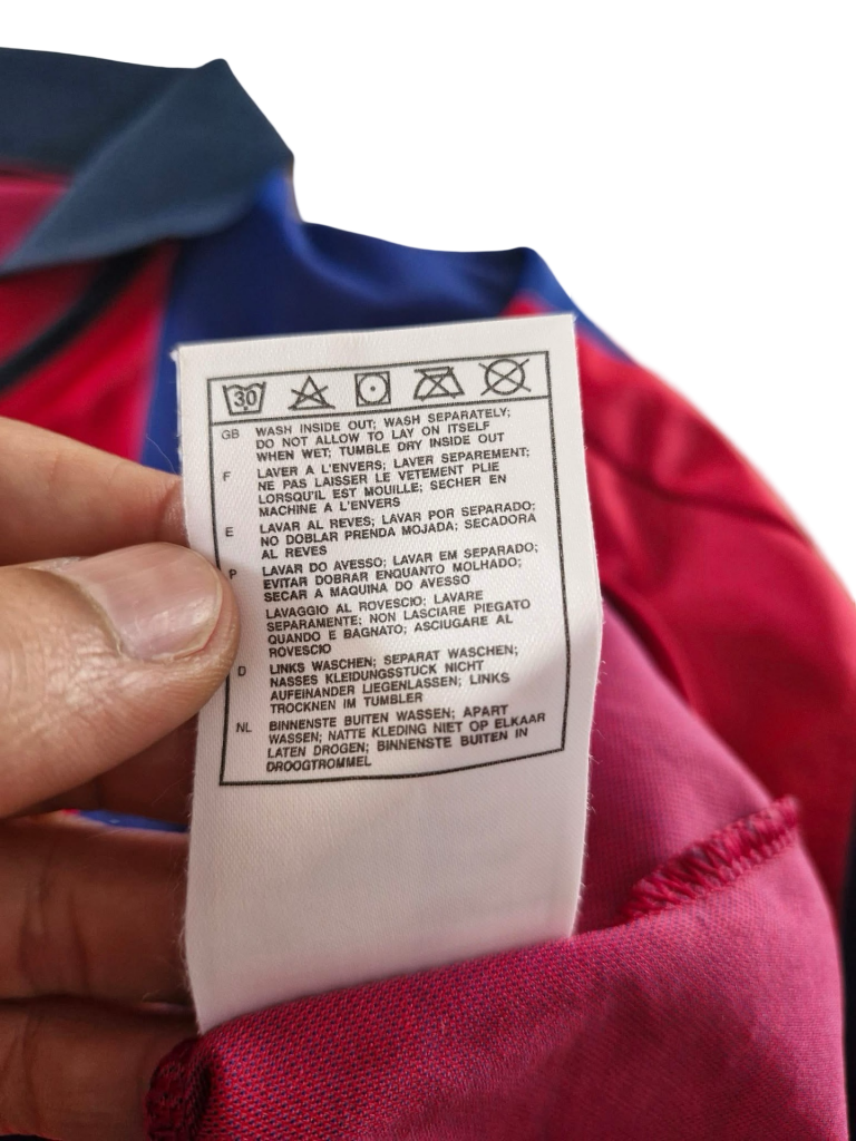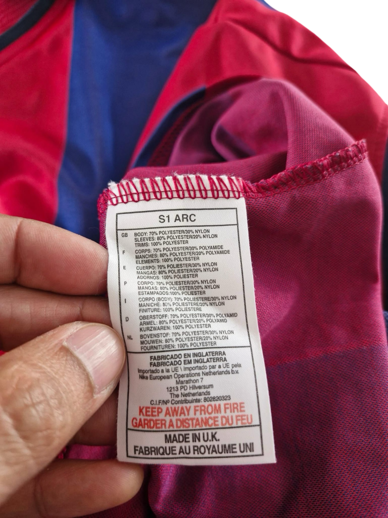 The Barcelona 2000 Home Shirt sits at the intersection of two eras—Nike’s rise in club kit innovation and a turbulent time for the team on the pitch. Known issues include confusion between the 1999–2000 and 2000–01 versions, which featured similar layouts but slight differences in collar design and crest placement. Many replicas lack the authentic inner neck labels or use incorrect sponsor tagging from other seasons. Fabric shine and colour bleed between the red and blue panels are common on poorly stored originals.