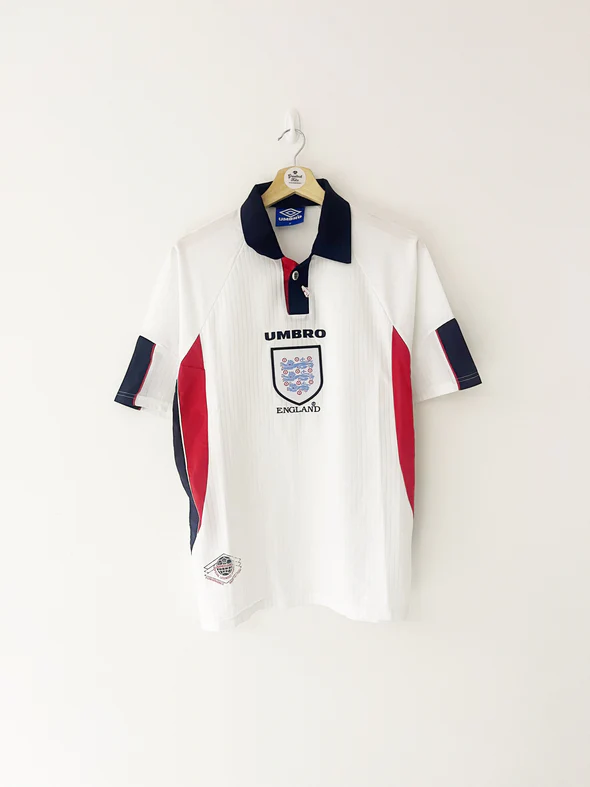 England 1998 Home Shirt – Authentication Guide The England 1998 home shirt, manufactured by Umbro, is one of the most iconic designs in the modern era of English football. Worn at the 1998 World Cup in France, the shirt introduced bold central detailing and a buttoned polo collar, while retaining classic white and navy tones….