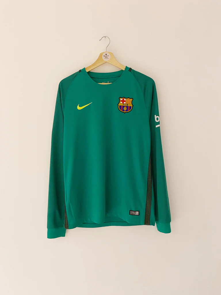 ⸻ Known Issues No major fake variants of this shirt are known at the time of writing. The authentic version shown here features the correct Dri-Fit neck printing, raised rubber Nike logo and crest, as well as the heat-applied authentic code label. ⸻ Shirt Details ⸻ Player Info (2016–17 Squad – Barcelona GK options) Player…