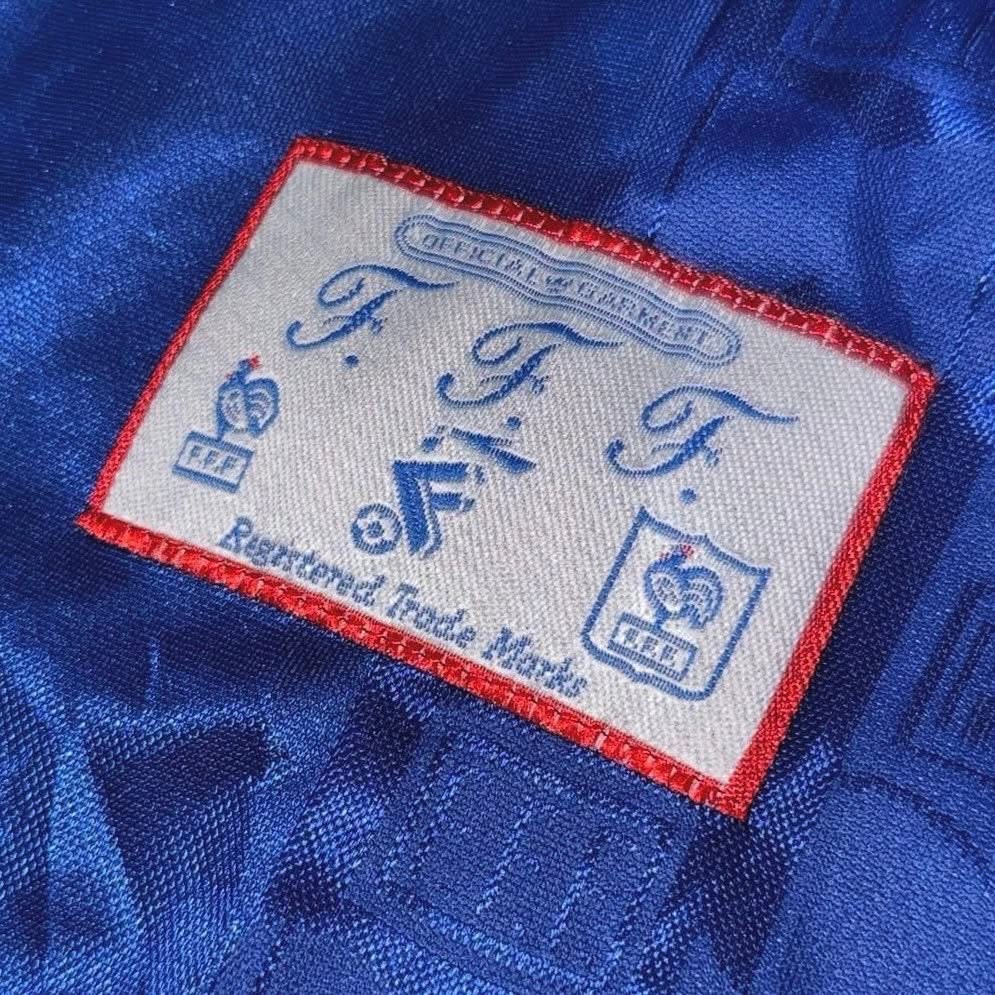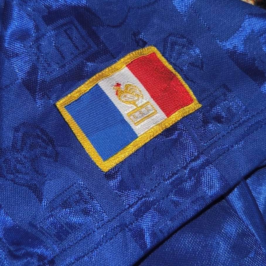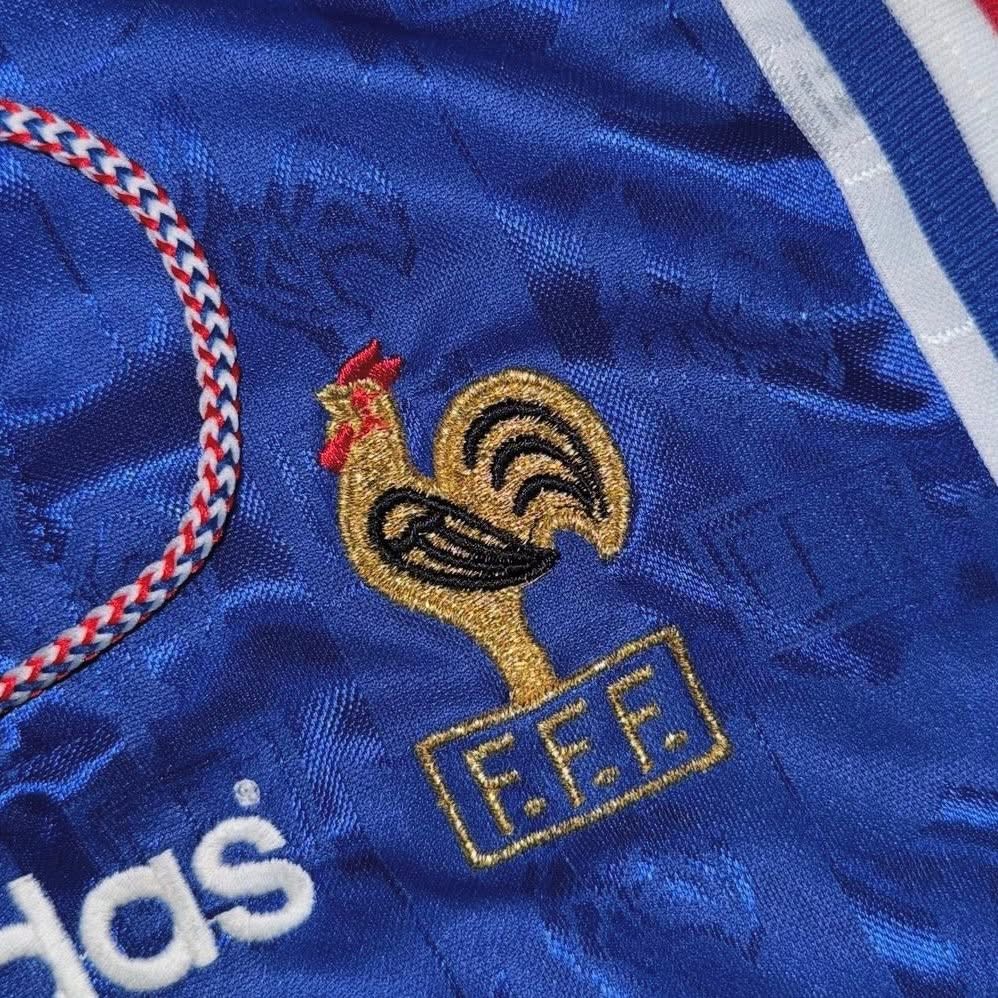 The France 1996 Home Shirt is a popular collectible from a transitional era for the French national team. Known issues include confusion with the 1998 reissue (which features subtle differences in cut and fabric), missing inner sizing labels, and fading of the white chest band. Some replicas on the resale market also incorrectly use the later FFF crest with a single star, which was not present at the time. Be cautious of listings showing glossy material or heat-applied badges.