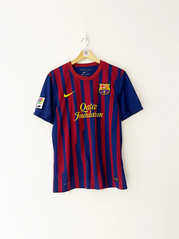 2011–12 Futbol Club Barcelona Home Shirt – Authentication Guide⸻Shirt OverviewTeam: FC BarcelonaSeason: 2011–12Type: HomeManufacturer: NikeMain Colours: Red and navy thin vertical stripesSleeve Style: Short sleeveSponsor: Qatar Foundation (front), Unicef (lower back)League Patch: LFP patch on right sleeveNotable Players: Lionel Messi, Andrés Iniesta, Cesc Fàbregas, Gerard Piqué, Xavi ⸻Key Authentication FeaturesNike Swoosh: Yellow embroidered on right…
